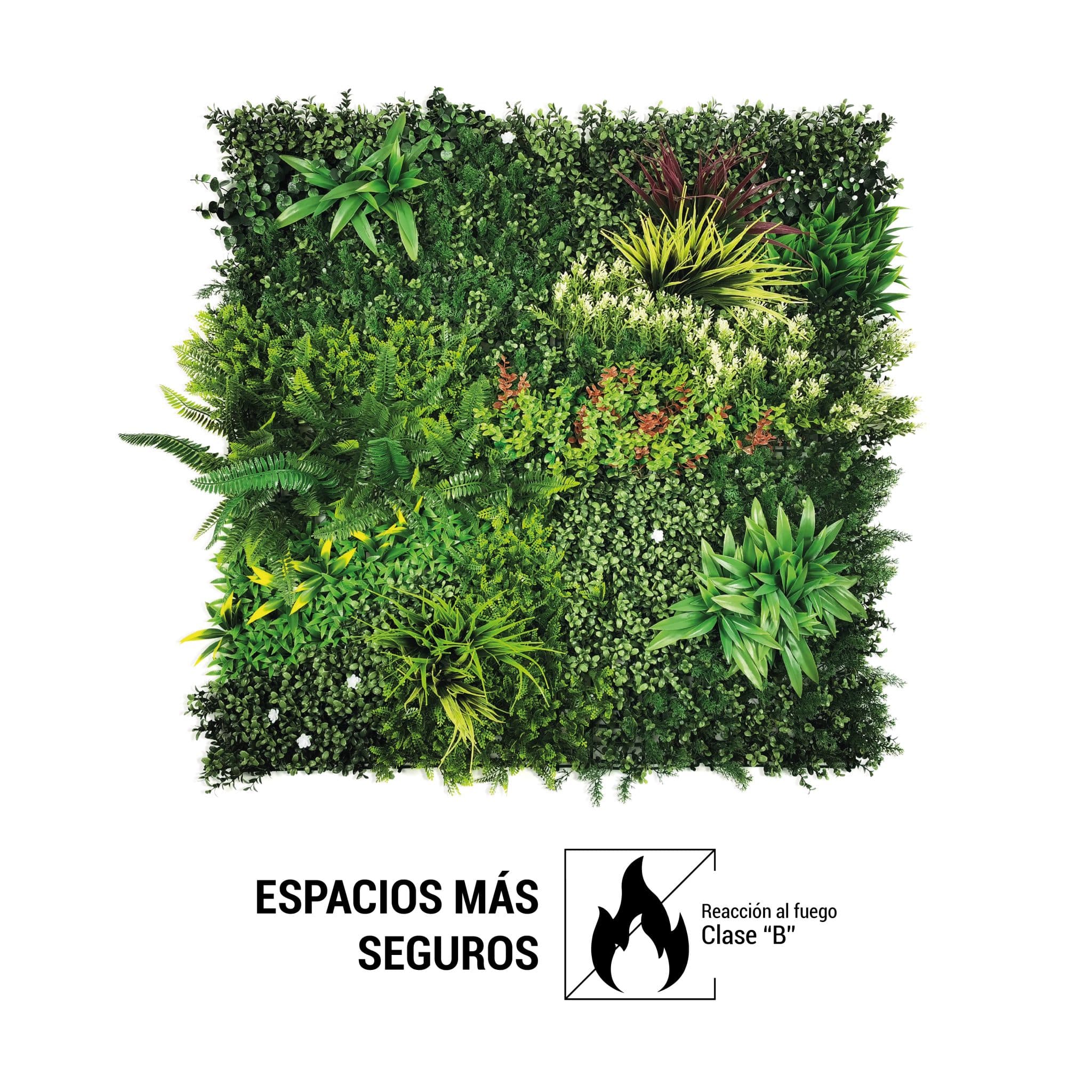 El jardín vertical artificial Costa Rica cuenta con un certificado de Reacción al Fuego Clase B, lo que lo convierte en una opción segura e ideal para la decoración de locales y comercios.