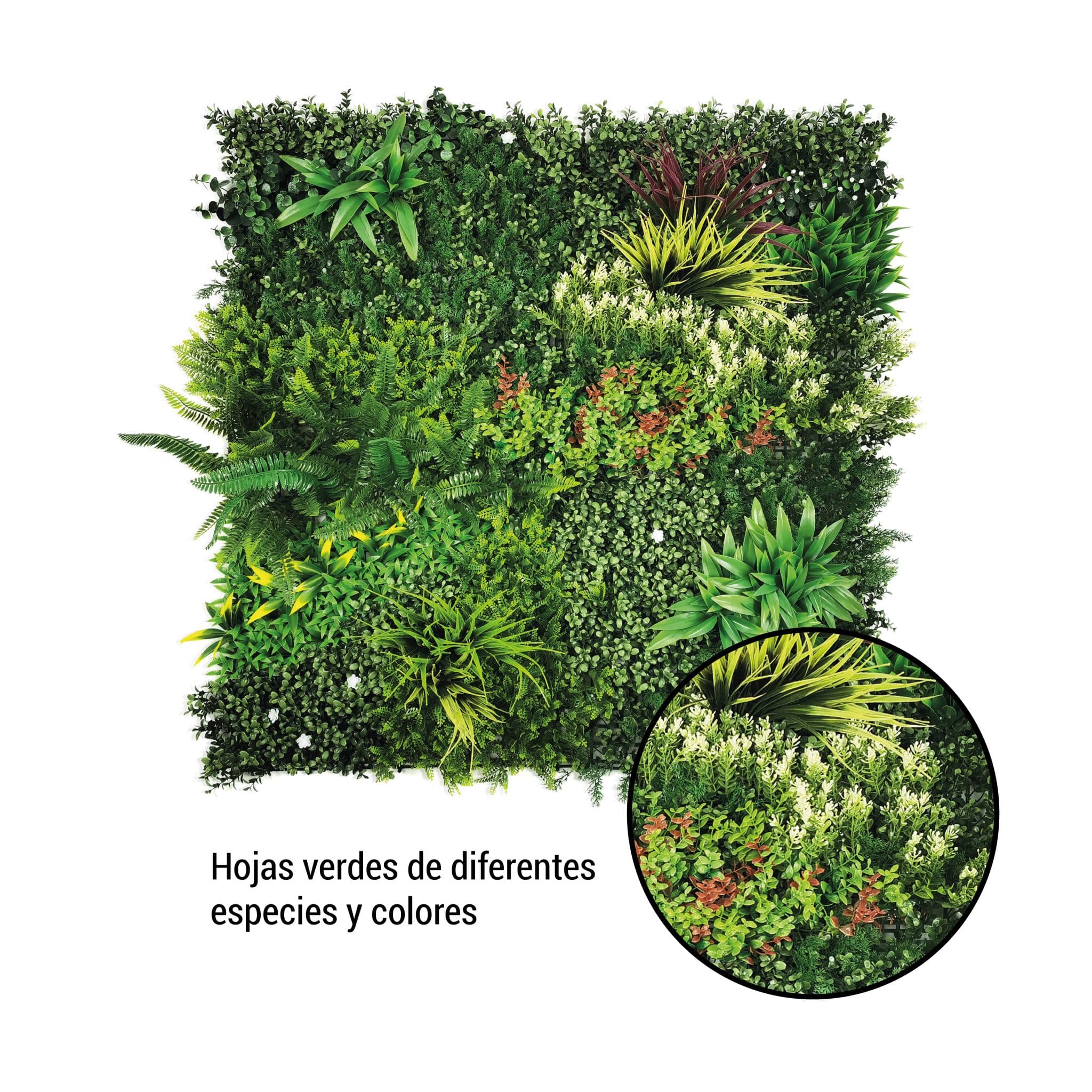 El impresionante jardín vertical a está diseñado para destacar por su amplia variedad de hojas verdes y hojas en tonos amarillos. ¡No deja a nadie indiferente!